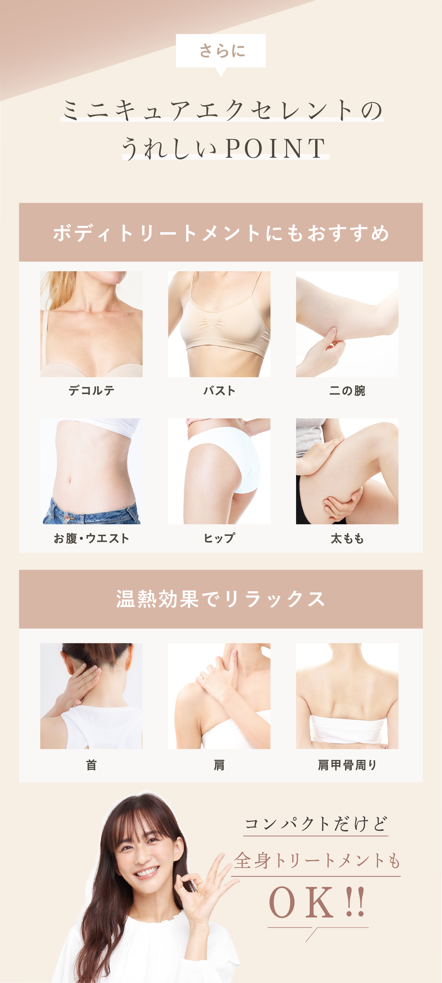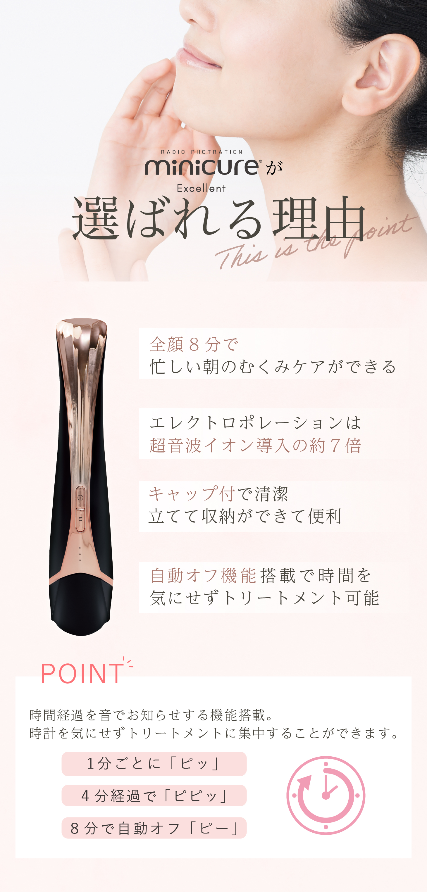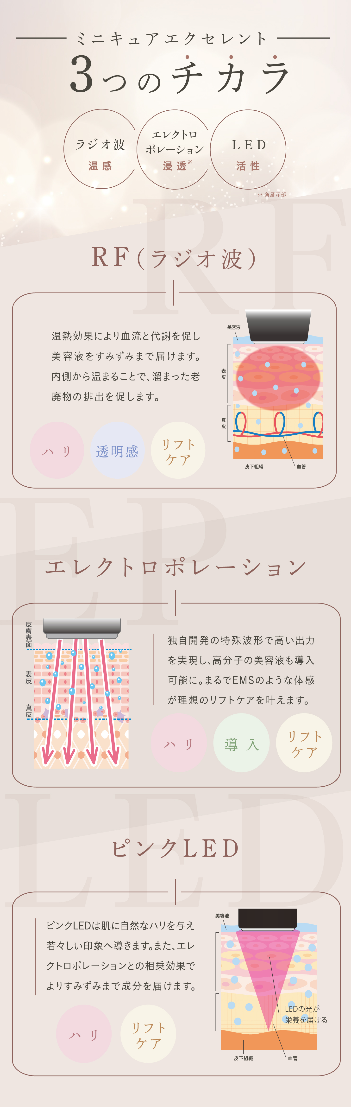 一台でリフトケア、シワケア、ニキビケア、くすみケアなど年齢肌へのアプローチが可能なコンパクト美顔器。